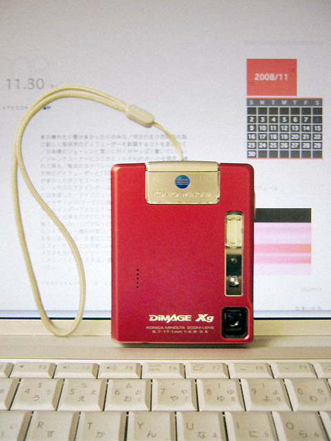 本日晴れたり雲が多かったりの休日/明日の生け花撮影の為に新しく照明用のディフューザーを新調するコトを思いつく/日本橋のジョーシンに買いに行くがやっぱり置いていない/ジャンクコーナーにコニカミノルタXgの赤いのを発見/連れて帰る/梅田のヨドバシへ向かう/ソフトボックス80センチ用のデイフューザーと150センチのアンブレラを購入/人が多かったがデモコーナーで様々なデジカメを触り倒す/ソニーα900のファインダーは良かった/しかしシャッター音には失望した/ライブビュー機能が無いので失格/そう考えるとキヤノン5Dマーク2は良く出来たカメラ/でも相変わらずファインダーでマニュアルピントが合わない/しかしライブビュー出来るのでこのクラスで1番かも?/個人的に誰も触ろうとしないシグマSD14に興味が在るw/しかし残念ながらライブビュー機能が無い/いつか中古の激安と出会うコトを楽しみにする/大宣伝していたのがルミックスG1/マイクロフォーサーズと云う新しい規格/在る意味1番魅力的なカメラかも知れない/ビーツに戻り、ミノルタXt用の電池をコニカミノルタXgに入れる/長い間眠っていたようだが生きていたw